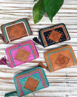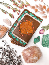 For the gypsy adventurer in us all, we welcome the gorgeous new Gypset Wallet. As if the beautiful hand tooling isn't enough to make you fall in love, we've also combined some colourful leather embroidery and stud detailing, making this leather wallet one of our more joyful and colourful creations. Each wallet has been hand tooled by one of our small team of leather crafters, making it truly special and unique to you. Choose from our range of stunning colours - Rust, Tan, Pink, Turquoise, Black & Chocolate.