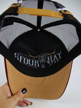 Introducing the ABNS - "Colt" trucker cap! The maroon and tan colour combination is truly chefs kiss worthy! With a deep fit and unique design, this cap is perfect for those who like to stand out and make a statement.