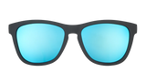 These black and blue sunglasses offer the best of both worlds: sleek black frames with a pop of color. A special grip coating prevents slipping and bouncing, making them ideal for running, golfing, frolfing, cartwheeling, and other sweaty activities. The ultimate duo: business in the frame, party in the lens.