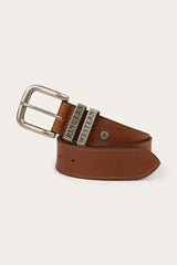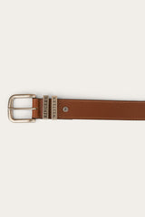 The James Belt is a premium 100% genuine leather belt. With unbeatable craftsmanship and attention to detail, you'll never want another belt. Now available for the little ones! Made with tawny brown leather and silver brass keepers, this kid's belt features a subtle embossed signature bull on the tail and intricate Ringers Western engraving for a luxurious finish.