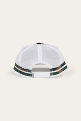 Our Ringers Western country trucker caps for kids feature a structured five-panel design with a cotton twill front and mesh back, offering ideal ventilation on sunny days. The bold Ringers Western logo on the front panel proudly represents the spirit of the brand. With twin side stripes on the mesh panels and an adjustable plastic snapback closure, this cap delivers a comfortable, custom fit that’s perfect for little ones on the move.