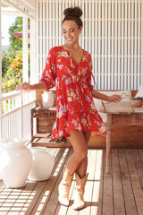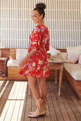 Get ready to turn heads with our stunning Aiko Print Faith Mini by Jaase, featuring beautiful boho-inspired details that are sure to make you feel confident and fashionable. The pull-in waist tie detailing allows you to create a flattering silhouette, accentuating your curves in all the right places. The skater skirt adds a playful touch, while the 3/4 sleeves keep you comfortable and stylish.