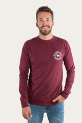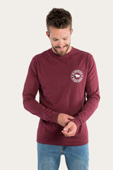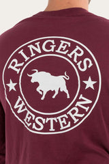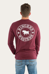 RINGERS WESTERN Signature Bull Mens Long Sleeve T-Shirt -Burgundy With White Print