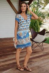 Introducing the refreshing ocean inspired Saphire Sands Print Ocean Dress. The perfect boho mini.