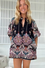 We are in love with this super fun Super Nova Print Mahlia Playsuit from JAASE. This playsuit from Jaase features a gorgeous graphic print and delicate detailing, adding a touch of bohemian chic to the casual design.