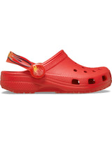These vibrant, bright red CROCS Flame Lights Classic Clog Kids Crocs capture attention with their fun, sporty aesthetic, perfect for young fans on the go. Designed for comfort and easy wear, they feature the iconic ventilation ports and pivoting heel strap that defines the classic clog style. The special racing-themed embellishments add a dynamic flair to this beloved, easy-to-clean footwear, making them an ideal choice for everyday adventures and playground fun. Plus! They light up!