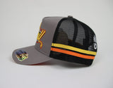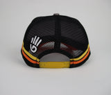 Structured Front Panel for stability and long-lasting shape. Mesh back with classic double side stripes. Full curved visor. Adjustable snapback closure.