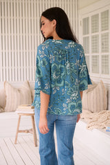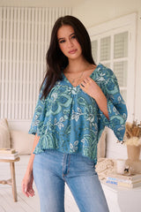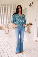 We are LOVING the new Serenade Print Gabriella Top from Jaase. Elevate your wardrobe with this beautifully printed flowy top. Featuring a flattering V-neckline and charming three-quarter lantern sleeves, this top adds a touch of elegance with its crochet scallop trim on the sleeve cuffs and hem. The oversized fit ensures a relaxed and stylish silhouette. Perfect for effortless sophistication!