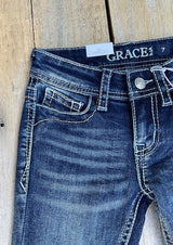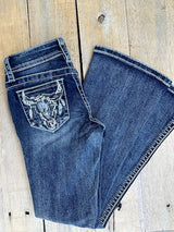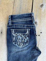 Grace In LA / Girls Bootcut Jeans - Embellished & Feathered Steer Head