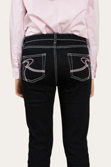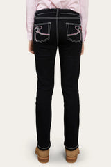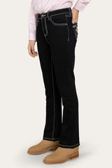 The Joey Kids Jean is now available in Dark Blue. A firm favourite - suited for all those important outside jobs and scrubbing up well for a trip into town. Featuring comfy stretch fibre blends and a functional bootleg cut, these jeans are staple for any busy girl's wardrobe!