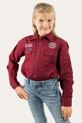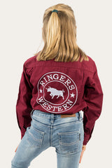 RINGERS WESTERN Kids Jackaroo L/S Full Button Embroidered Work Shirt - Burgundy / White -