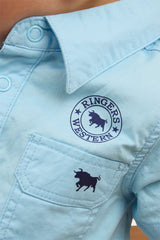 RINGERS WESTERN Babies Short Sleeve Work Shirt Romper - Sky Blue
