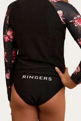 Created from a fully lined matt lycra blend, these full coverage swim bottoms are durable and comfortable - perfectly suited to active days spent enjoying the surf and sun. A large Ringers centre back print gives a subtle nod to the brand whilst bringing a touch of country charm to the coast.