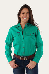 RINGERS WESTERN Pentecost River Womens Half Button Work Shirt -Green