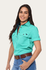 Ringers Western Jules Women's Short Sleeve Half Button Work Shirt - Mint