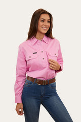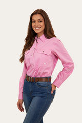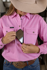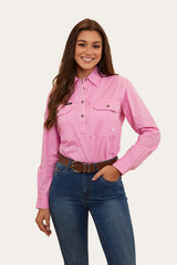 RINGERS WESTERN Herefords Womens Half Button Work Shirt - Pastel Pink/Beige
