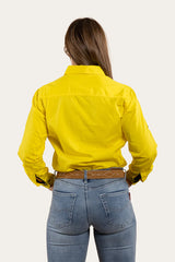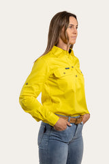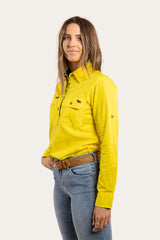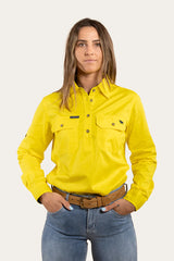 RINGERS WESTERN Pentecost River Womens Half Button Work Shirt -Neon Yellow