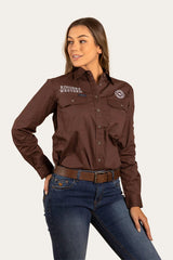 RINGERS WESTERN Signature Jillaroo Womens Full Button Work Shirt - Chocolate/White.