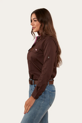 RINGERS WESTERN Pentecost River Womens Full Button Work Shirt -Chocolate/Pastel pink