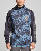 The Mad Hueys CAUGHT FK ALL | UPF 50+ HOODED MASKED FISHING JERSEY - DARK COBALT