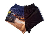 For the kings of the bunout pad and the legends who don't lift. These high-quality footy shorts are an ode to power slides, high revs, and that unmistakable scent of cooked rubber. One leg features a full-blown photo print of a beefed-up ute lighting it up, while the other keeps it clean with AFS branding and contrast panelling. These aren't just shorts — they're a lifestyle choice.