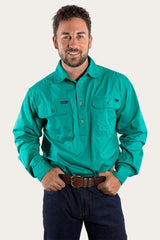 RINGERS WESTERN Boss Mens Half Button Work Shirt -Green
