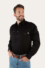 RINGERS WESTERN King River Mens Half Button Work Shirt -Black