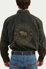 RINGERS WESTERN Hawkeye Men's Full Button Work Shirt - Military Green