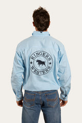 RINGERS WESTERN Hawkeye Men's Full Button Work Shirt - Sky Blue/Navy
