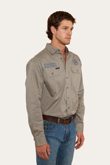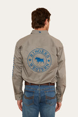 RINGERS WESTERN Hawkeye Mens Full Button Work Shirt-Grey/ Snorkle Blue.
