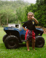 For the little legends who love to stand out! These high-quality footy shorts with pockets feature bold pink, white, and navy colour-blocking, plus a bright floral pattern that screams fun. Whether they’re racing scooters, chasing footies, or perfecting their cartwheels, these kids' casual shorts are made for action.