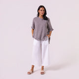 Effortlessly charming with a relaxed, everyday feel; this gingham shirt is made for easy wear. Featuring a soft round neckline, fluttery short sleeves and a delicate ruffle hem, it drapes beautifully for a flattering, breezy fit. The classic check pattern adds timeless appeal, making it perfect to dress up with linen pants or keep casual with denim. A go-to piece for laid-back days with a touch of feminine detail.