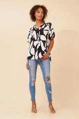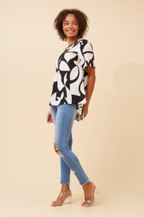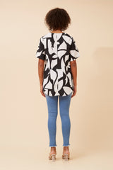 Short sleeve animal print top with lace trim detail