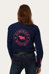 RINGERS WESTERN Signature Jillaroo Womens Full Button Work Shirt - Navy/Melon