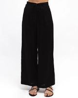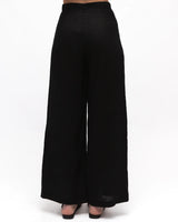 Designed for comfort without sacrificing style, these black wide-leg pants feature a soft, fluid drape and an adjustable drawstring waist for an effortless fit. The relaxed silhouette moves beautifully, making them perfect for everyday wear, travel, or dressed up casual looks. Easy to style and endlessly wearable, they’re a go to piece you’ll reach for season after season.