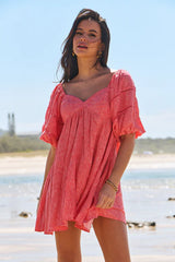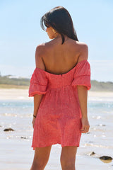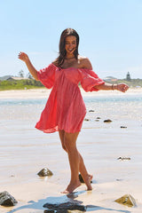 The charming Wattle mini dress can be worn on or off the shoulder. Its relaxed fit and comfortable style make it the ideal choice for transitioning from beach to cocktail attire.