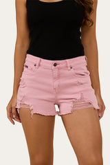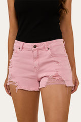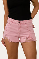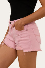 RINGERS WESTERN Jessie Women’s mid Rise Ripped Denim Short- Light Pink