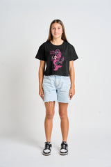 This short sleeve tee has a mermaid youth front chest and back graphic print