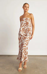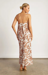 Winnie & Co. / Strapless Abstract Print Faux Linen Top - Camel