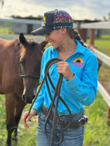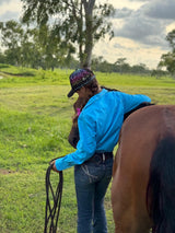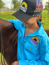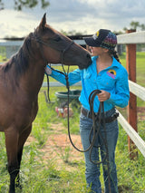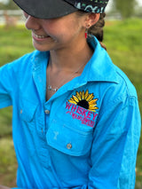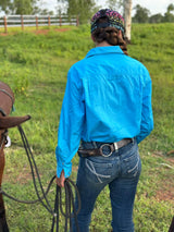 W&W Embroidered Women's Half Button Pilbara Work Shirt/ Cornflower