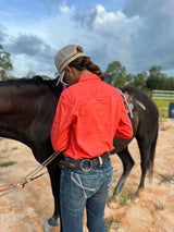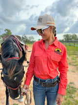 W&W Embroidered Women's Full Button Pilbara Work Shirt/ Watermelon