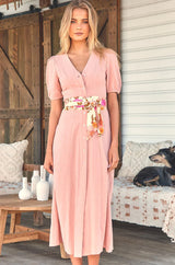 Fall in love with the new Ballerina Pink Print Sunkissed Maxi Dress this season. Pair with your favourite heels and a cute statement clutch for the perfect date night look.