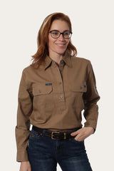 RINGERS WESTERN Pentecost River Womens Half Button Work Shirt -Clay