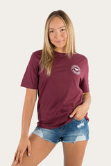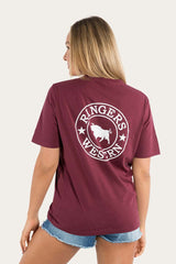 RINGERS WESTERN Signature Bull Women's Loose Fit T-Shirt -Burgundy With White Print