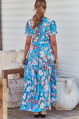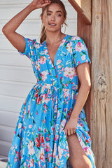 - KEY FEATURES: V Neckline, Buttoned Down Dress, Pull In Waist Tie, Elasticated Waist, Short Balloon Sleeves and Tiered Skirt.
