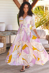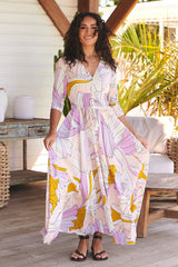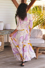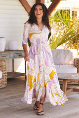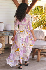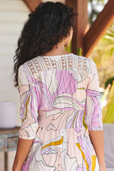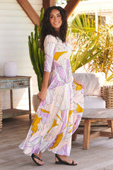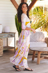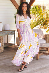 Obsessed with our latest Lavender Swirl Print Indiana Maxi Dress (Indiana Cut/Style). This stunning style features beautiful and feminine lace back paneling. It also features waist ribbing and a cute tassel tie to bring it all together.