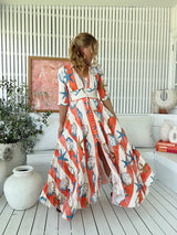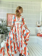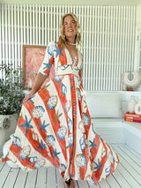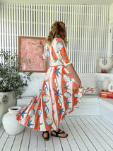 The Jaase all time classic style, Long Island Print Indiana Maxi. This feminine style is the ultimate in romantic boho with this floaty full length full circle hem and button down front. You can't not feel like a princess when you are wearing your Indiana maxi. The shirred waist provides a stunning shape for all women