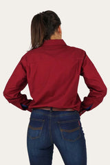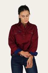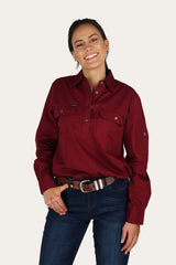 RINGERS WESTERN Pentecost River Womens Half Button Work Shirt - Burgundy