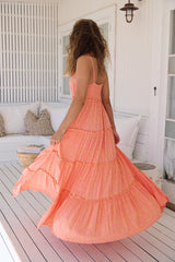 This perfectly printed Jaase maxi has a gorgeous free and floaty silhouette. The Peppa is effortless style accented by cute frill edges on each layer. The neckline is cool and comfortable with an adjustable spaghetti and ruched back, it’s sure to be a new favourite in your wardrobe.