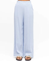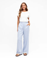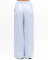 Soft, fluid and endlessly wearable; these pale blue wide-leg pants bring an easy elegance to everyday dressing. Designed to sit smoothly at the waist, they fall into a relaxed, flowing leg that moves beautifully with you. The lightweight fabric makes them perfect for warmer days, while the clean silhouette keeps them versatile enough to dress up or down. A timeless staple for an effortlessly put-together look.